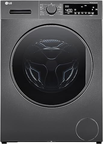 - 8kg capacity front load washing machine suitable for compact householdsAI Direct Drive senses fabric type and optimizes wash motions for improved careSteam+ Allergy Care reduces allergens and minimizes wrinkles for healthier laundry1400 RPM spin speed for efficient drying performanceThinQ Wi-Fi connectivity for smart remote control and Smart DiagnosisInverter Direct Drive motor with 10-year warranty for durability and quiet operationPremium Dark Graphite finish with tempered glass door and modern LED
